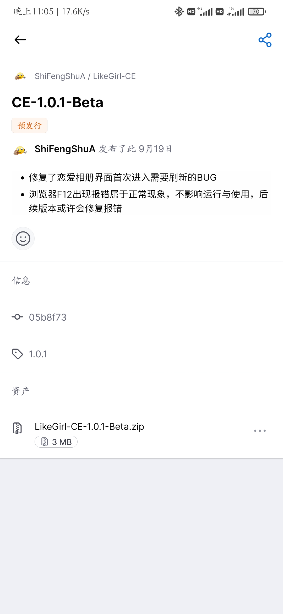 LikeGirl-CE情侣小站社区版 CE-1.0.5版本于2025.11.28更新,适配版同步更新CE-Adapted-1.0.1版本,源码已上传GitHub与Gitee————————以下是详细更新内容:1.修复了因loveImg.css文件中的一个重复#pjax-container元素,导致的...